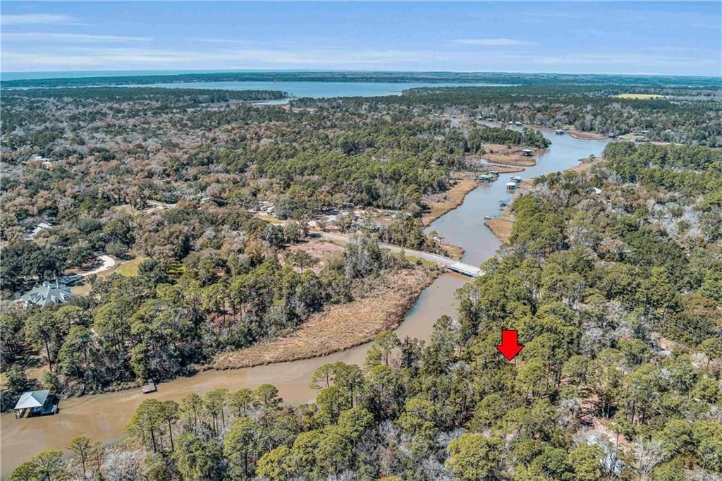 Discover a rare almost 10-acre waterfront parcel on Nolte Creek, which feeds into the scenic Magnolia River. This serene, wooded property boasts 600 feet of water frontage with a private dock, offering an ideal setting for boating, fishing, kayaking, and canoeing. With water depths ranging around 4 to 8 feet depending on the tide, the creek is easily navigable and provides the perfect blend of privacy and accessibility. The land is beautifully covered with mature live oaks and pine trees, creating a tranquil natural escape where wildlife such as Dolphins, Pelicans, Bald Eagles, and Ospreys are frequently spotted. While the value is placed in the land alone, there is a charming 728 Square Feet Katrina Cottage, built in 2007, on the property. Featuring two bedrooms, one bath, kitchen, laundry, den, and a deck with ramp access, the cottage provides a comfortable retreat or guest space. There is also a fenced-in area, perfect for pets. Additional improvements include two wells (one with a hand pump), a septic system, and a pole barn with storage and two stalls, ideal for equipment or hobby use. This property was once home to a fern farm, offering rich soil and potential for gardening or small-scale agriculture. With endless possibilities, this land could be used for RV pads, Airbnb rental, or a private single-family residence as it is currently zoned rural agriculture. The Nolte Creek boat launch and Magnolia Springs Marina are just around the corner, adding to the property's convenience. If you're looking for a peaceful waterfront sanctuary with investment potential, this hidden gem is a must-see. Buyer to verify all information during due diligence.