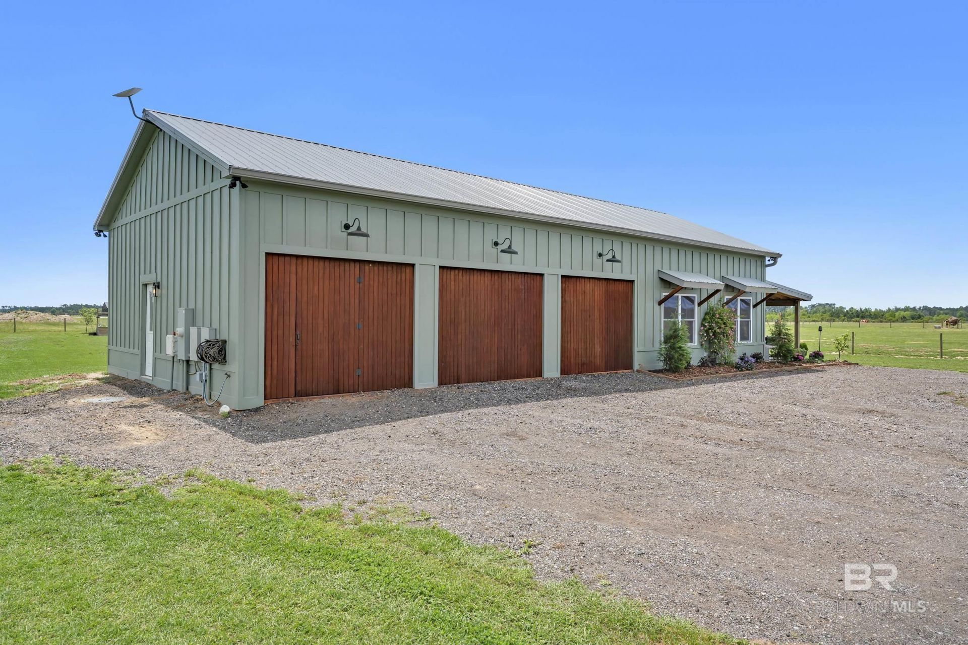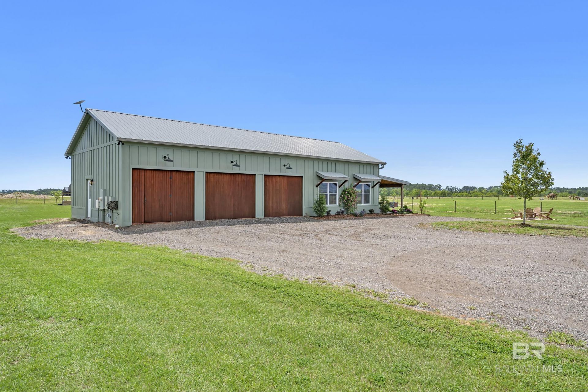 Welcome to 15805 Bucolic Lane in Foley, Alabama. Discover the perfect blend of charm, opportunity, and prime location with this beautiful 10.21-acre cleared property centrally located in thriving Baldwin County. Nestled in a picturesque and pastoral setting, this unique offering features a quaint 2-bedroom, 1-bath board and batten carriage house constructed in 2024 that is full of character and endless potential. The land offers a fully fenced layout with ample space for a micro farm, gardening, or recreational or residential use. Existing animals and equipment may be available for separate purchase, making it even easier to bring your vision to life. Enjoy breathtaking sunsets and wide-open skies as you begin building your dream lifestyle. Situated on the western side of the property is a 20x48 pole barn, ideal for storing equipment, along with a chicken coup, a necessity for any farm. Also on property is a well with a 3 stage water filtration system. Entire property has been power seeded with an Argentine Bahia on front and forage mix on the back pastures. The dwelling is thoughtfully equipped with full RV and sewer hook-ups. Ideally situated just minutes from Alabama's stunning Gulf Coast beaches, the Easter Shore and convenient to larger cities such as Mobile, Alabama and Pensacola, Florida, this property combines peaceful country living with convenient access to the area's rapid growth and expanding industries throughout Baldwin County. Whether you're seeking a private homestead, investment opportunity, or weekend retreat, the possibilities here are truly endless. With its serene atmosphere, central location, and future potential, this property is the perfect starting point for creating something truly special. Buyer to verify all information during due diligence.