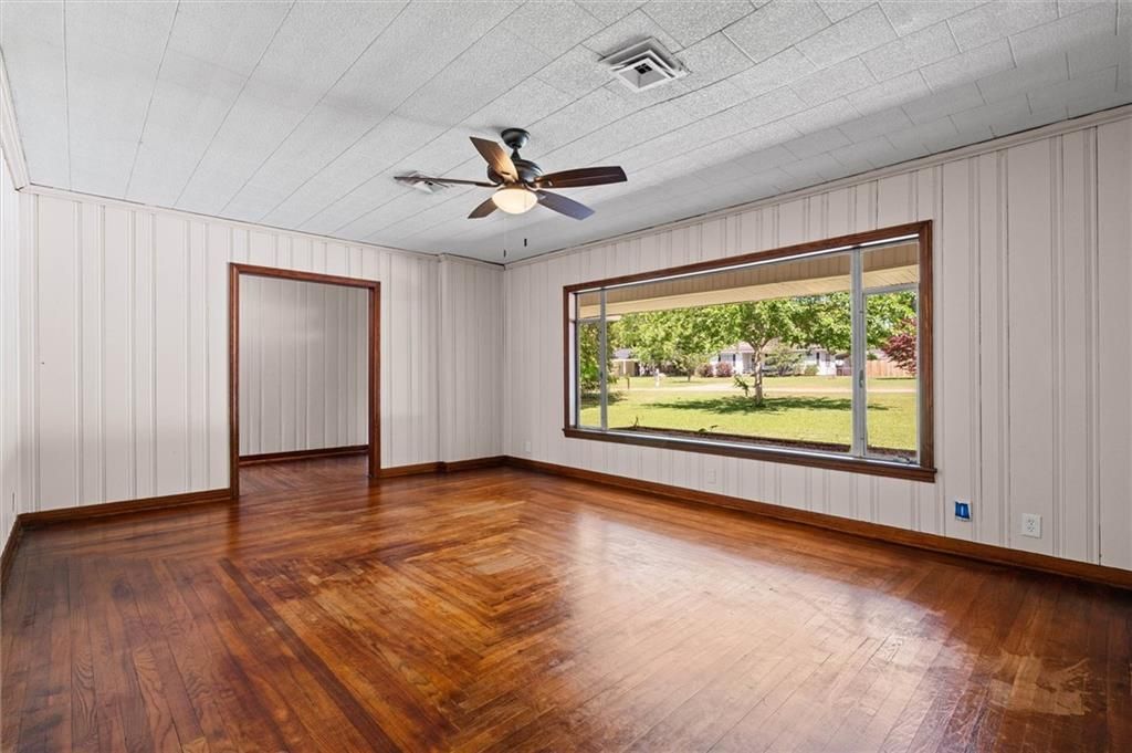 Welcome home! This charming 3-bedroom, 1.5 bath home offers space, character, and several updates throughout.Step inside to a freshly painted large living and dining area featuring original hardwood floors and plenty of natural light. The kitchen is a standout with granite countertops, subway tile backsplash, abundant cabinetry, and convenient breakfast bar seating-perfect for everyday living or entertaining.Just off the main living area you'll find a cozy nook that would make the perfect office space, reading corner, or coffee bar setup.The home also features updated flooring in the kitchen and breakfast area, a dedicated laundry room, and a convenient half bath for guests.Step outside to enjoy a spacious yard with plenty of room to relax, entertain, or garden, along with a welcoming front porch that's perfect for morning coffee or winding down in the evenings. The home is topped with a durable metal roof, adding long-lasting protection and low maintenance.With its functional layout, generous living spaces, and charming details, this home is ready for its next owner to move in and make it their own.Buyer to verify all information during due diligence.