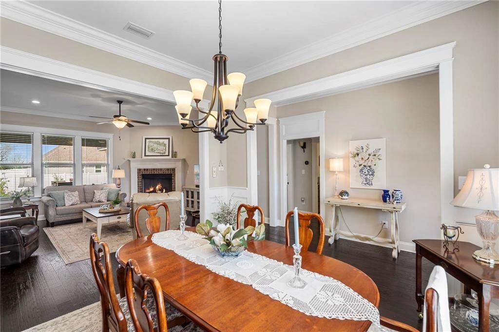 Beautifully crafted 4-bedroom, 3-bathroom Gold Fortified home in the highly desirable Jubilee Farms community-just steps from the adult pool, clubhouse, and top-tier neighborhood amenities. Built by Truland and designed with both comfort and style in mind, this Brick home features a spacious open-concept layout with engineered hardwood flooring throughout the main living areas. A formal dining room and cozy breakfast nook offer flexible spaces for both entertaining and everyday living. The kitchen is a standout, complete with granite countertops, stainless steel appliances, a drop-in gas cooktop, and built-in oven and microwave, all complemented by a generously sized pantry. Modern Smart Home features including an Ecobee thermostat, Ring doorbell, and security camera add convenience and peace of mind. The living room centers around a warm gas fireplace, creating a nice gathering space. The primary suite is a true retreat, featuring two walk-in closets, split granite vanities, a tiled walk-in shower, and an oversized soaking tub designed for relaxation. Step outside to enjoy the extended back patio. The fenced backyard offers privacy and charm, complete with a swing, fruit trees, and raised garden beds. Additional features include an impressive 8-foot solid mahogany front door, tankless water heater, and gas cooking. As part of Jubilee Farms, residents enjoy access to resort-style amenities including multiple pools, a fitness center, clubhouse, scenic walking trails, and more-all just moments from your front door! Buyer to verify all information during due diligence.