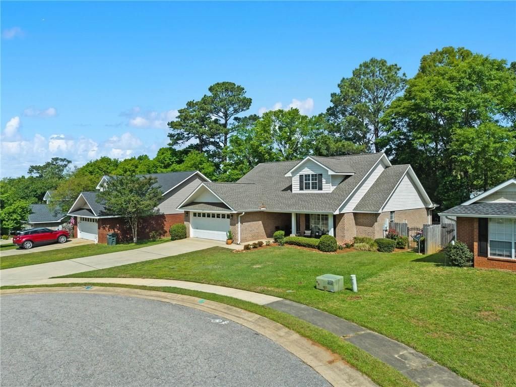 Located in Chateauguay Square in Daphne, this 3-bedroom, 2-bath brick home offers approximately 1,654 square feet and is positioned on a cul-de-sac.The interior features an open layout with a living area that connects to the kitchen, which includes a breakfast bar and designated dining space. Luxury vinyl plank flooring extends through the main living areas.The primary bedroom includes a private bath, while two additional bedrooms and a full bath are located within the home.Exterior features include a covered front porch, landscaped yard and fenced backyard. Additional features include central electric HVAC (2012), kitchen appliances including dishwasher, microwave, and electric range (2004), and refrigerator (2024). Roof replaced in 2022 (Bronze Fortified).Property is connected to city sewer (grinder pump approx. 3 to 4 years old) and includes a transferable termite bond.Buyer to verify all information during due diligence. Buyer to verify all information during due diligence.