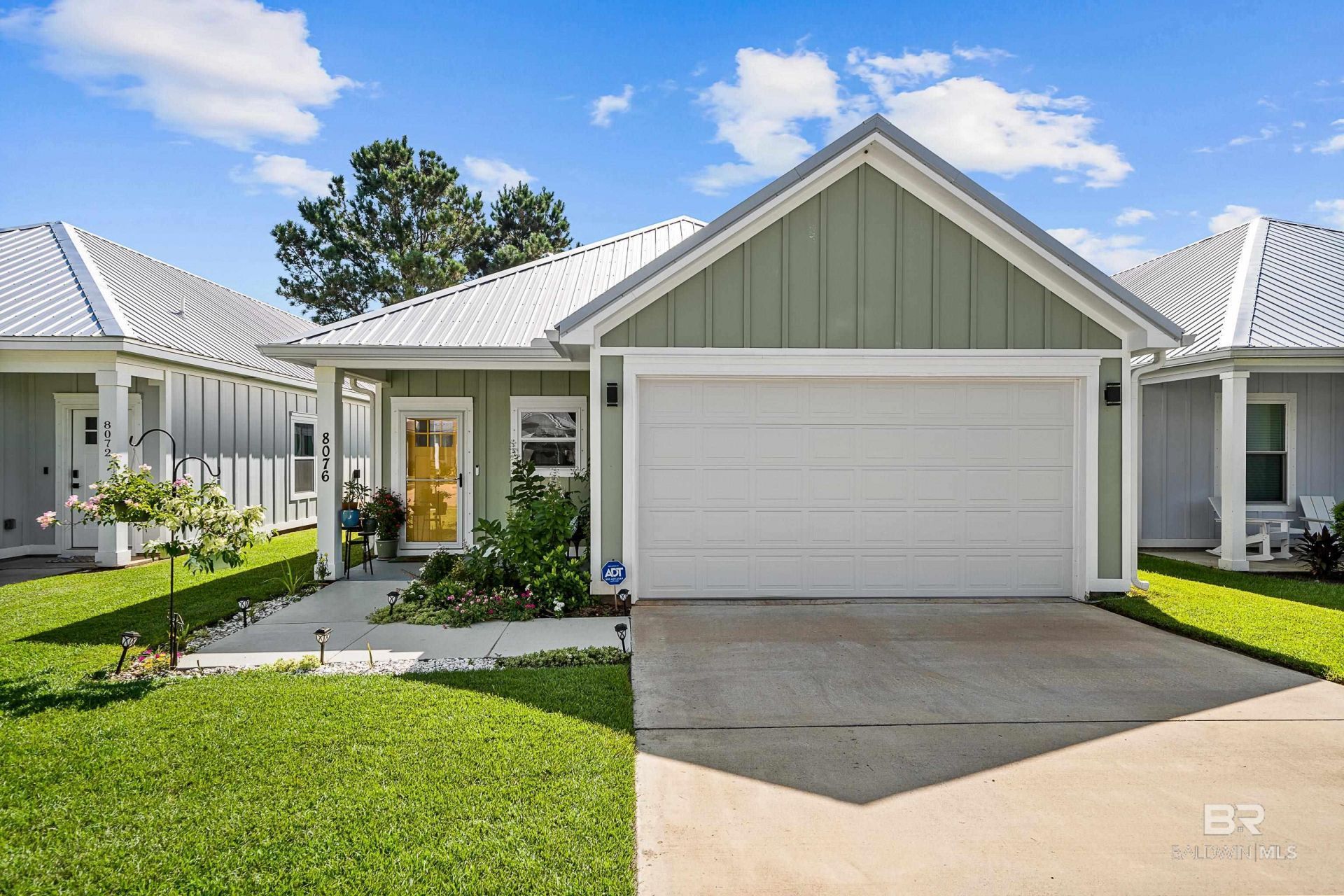 Discover modern coastal living and income potential at 8076 Carmel Circle in Foley, Alabama, located in the desirable Bella Vista community. Built in 2022, this 3 bedroom, 3 bathroom home features Fortified Gold construction and a metal roof, offering enhanced durability, energy efficiency, and potential insurance savings?highly sought-after features for Gulf Coast buyers.This open concept, split-bedroom floor plan is designed for both privacy and functionality, with a seamless flow between the living, dining, and kitchen areas?ideal for entertaining or everyday living. The interior showcases luxury finishes throughout, including a statement wood beam ceiling, quartz countertops, custom closet systems, and luxury vinyl plank (LVP) flooring throughout?no carpet.The kitchen is a standout with quartz counters, a cultured granite farmhouse sink, and soft-close cabinetry, blending style and convenience for today's buyer. Each bedroom offers access to its own bathroom, making this layout especially appealing for families, guests, or vacation rental use.Outdoor living is just as inviting, featuring a screened-in porch, extended patio, and added gutters. The backyard setting offers a peaceful, shaded atmosphere with mature trees and access to a community walking path, creating a private and relaxing retreat.Bella Vista is a small, quiet neighborhood of custom homes in Foley, AL, conveniently located just off Highway 59. Enjoy quick access to shopping, dining, and entertainment, while being only 15 minutes from the white sand beaches of Gulf Shores, Alabama.Short-term rentals are allowed, making this property an excellent opportunity for a vacation home, Airbnb investment, or income-producing rental property along the Alabama Gulf Coast.Whether you're searching for a primary residence, second home near Gulf Shores, or turnkey investment property, this home offers the perfect combination of location, construction quality, and modern design. Buyer to verify all information dur